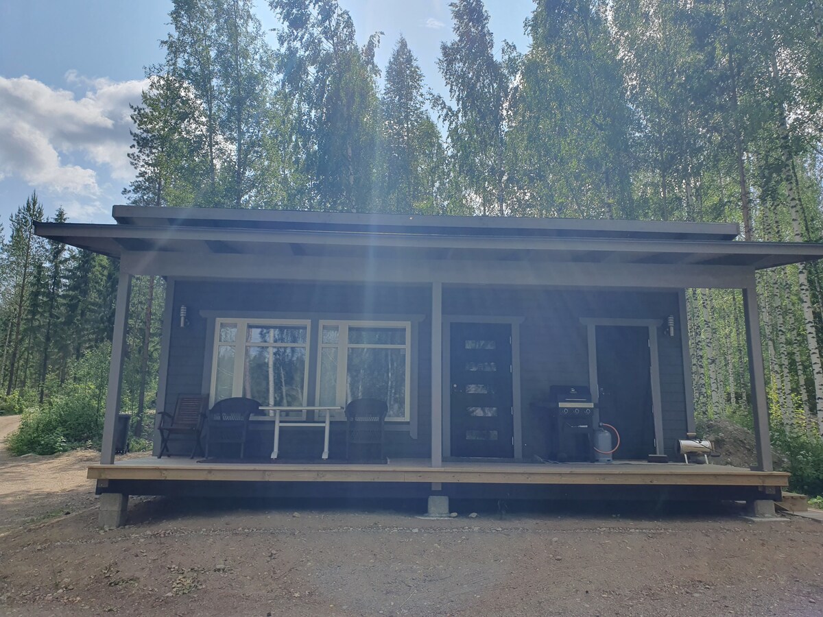 Relax and enjoy your stay in this scenic location, on the shores of a lake in a forest landscape. In addition to the sauna, the beach sauna has a fireplace room with a kitchenette. Hot and cold water comes and goes to the sauna and kitchen. The terrace has a gas grill for free use. Modern sauna cottage at a lake. Nice views to the lake from the living room, sauna and the bedrooms, which are in a separate building a few meters from the sauna-cottage.