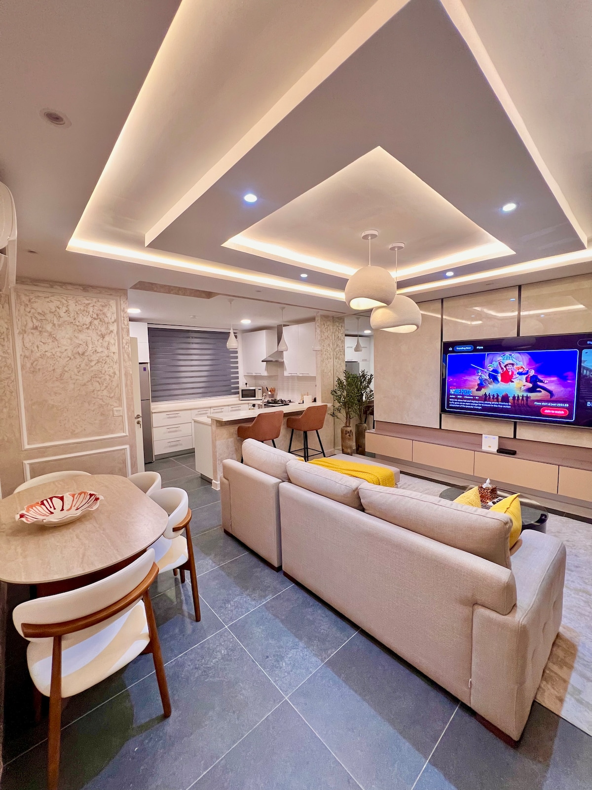 Welcome to our cozy 7-guest townhome! Enjoy a charming one-story retreat with modern amenities. Relax in the open living area, cook in the fully equipped kitchen, and dine together. 4 bedrooms ensuite with bathrooms to ensure a restful stay. Enjoy shows on the flat TV or fun game nights. Stay connected with Wi-Fi and enjoy fresh linens and toiletries. Located near attractions around Aburi, 25 - 30mins away to the airport, this is your perfect vacation getaway. Book now and make lasting memories!