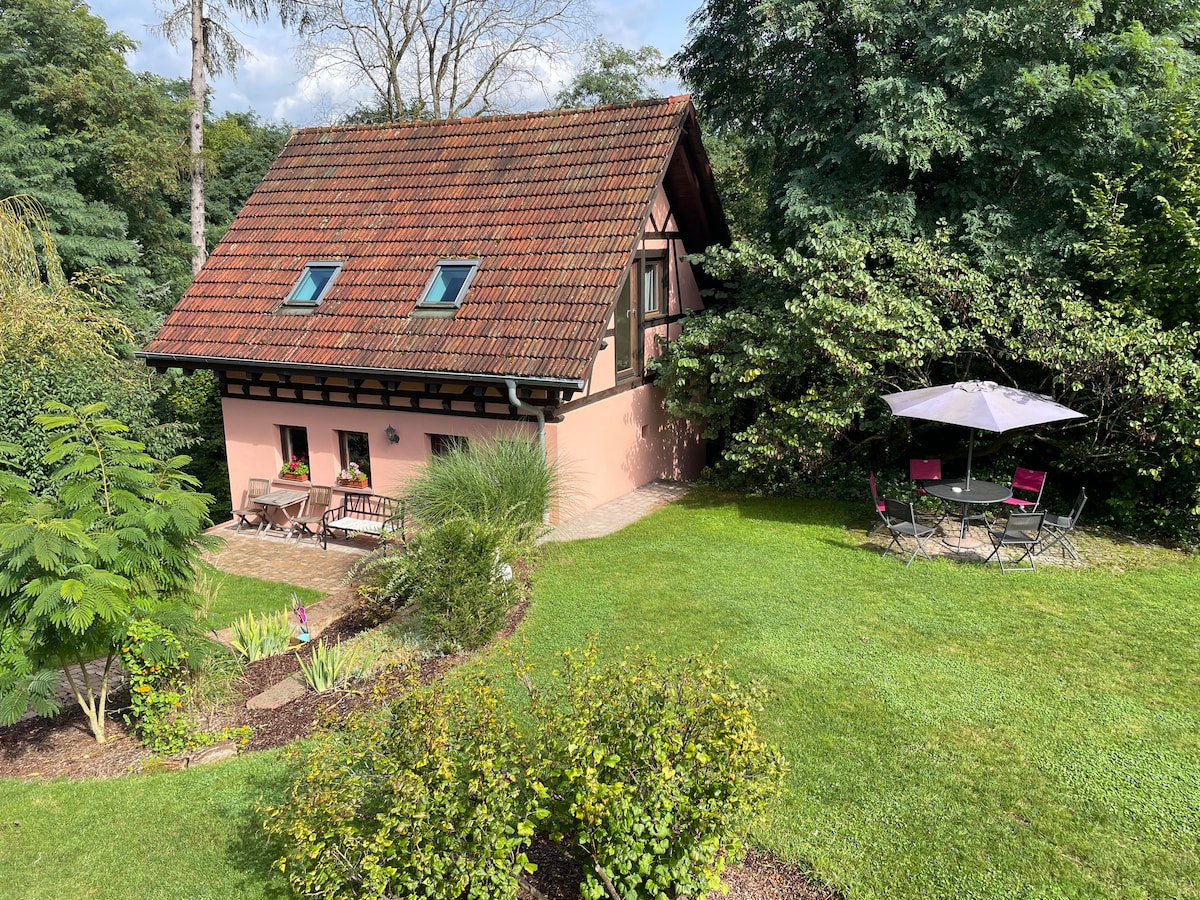 the proximity to Strasbourg and Germany in a green and tranquil setting is a major asset for this fully equipped studio for 2 people (or two people plus a baby under 2 years old) The studio has one bedroom with a double bed, (a crib); in summer you have a table and chairs in the garden, as well as deckchairs. Linens, kitchen towels and bath towels are provided. cleaning fees are not deductible.