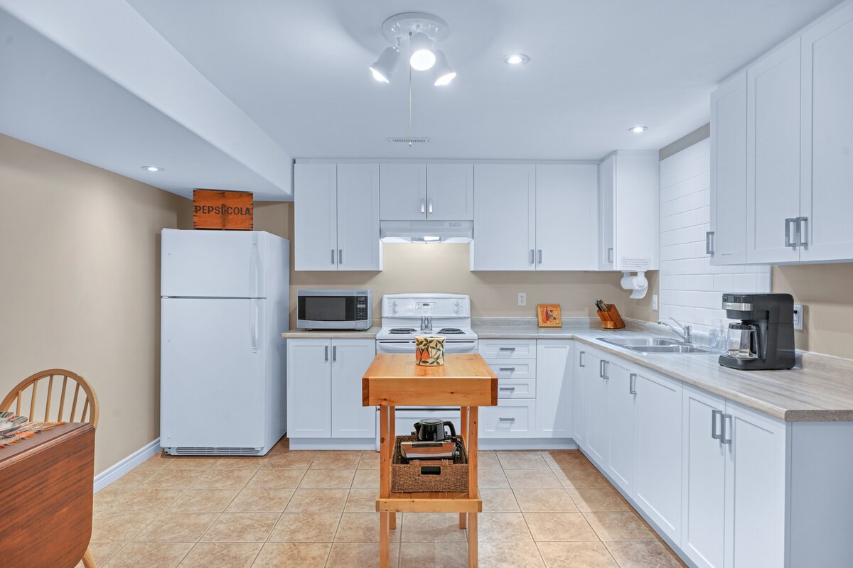 We hope you enjoy your stay in our newly renovated private suite. Thoughtfully designed, it offers everything needed for a perfect getaway or staycation in Guelph. Centrally located just minutes from downtown, shops, restaurants, trails, parks, and more. If you'd prefer to relax on the property, cozy up by the backyard fire pit, play outdoor games, or lounge in the sun with a good book. The suite includes high-speed Wi-Fi, a full kitchen, and free parking to make your stay even more comfortable.