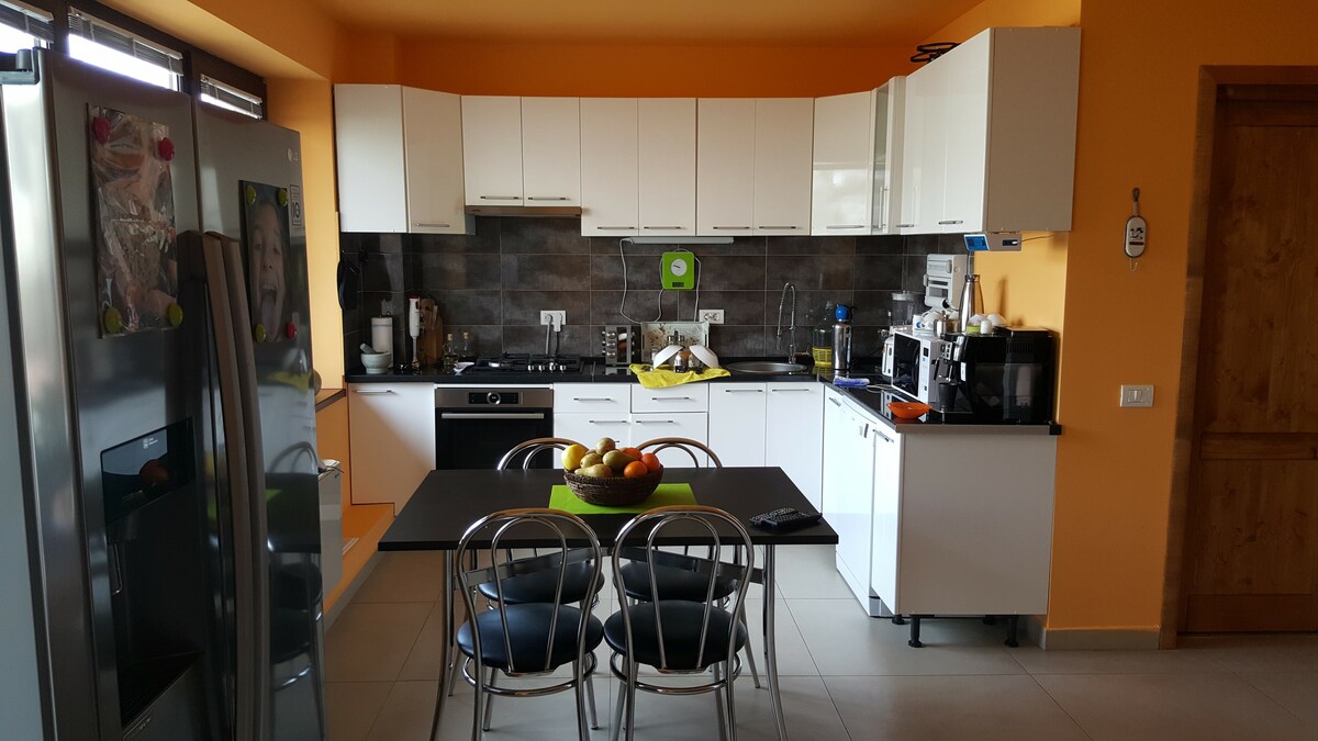 The villa is ideal for a family holiday. The whole space is available for the guests. It is located in a very peaceful residential area, 5 minutes walk from the city centre. The marble terrace and garden are situated in the backyard, with acces both from the living room, as well as from the ping pong room. The ground floor consists of generous living and dining area, as for the sleeping area, the bedrooms with one fully equipped bathroom are place on the first floor.