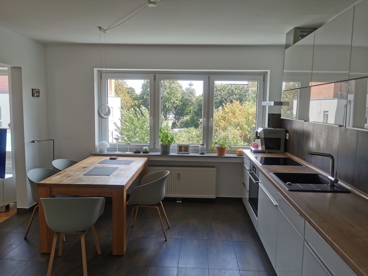 Live in the listed old building, chill on the private terrace, relax in the tub bath with daylight, cook in your own mini-kitchen. Lots of light and air. There is a small workplace with a computer. The area offers countless restaurants and cafes. Within walking distance are various concert and event venues. The U-Bahn stop Piusstraße is right outside the front door. From there it is 18 minutes to Cologne Fair, 30 minutes to the airport, by short distance to the cathedral/main station and Neumarkt.