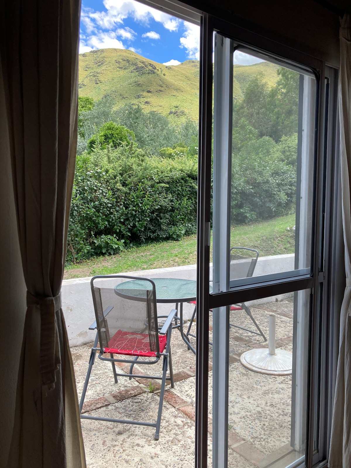 It's a studio apartment facing the river, in a thousand-meter park. Ten minutes from Capilla. Very easy access to the river and buses. It's not shared, but we live nearby for whatever you need. It has a well-equipped kitchen, A/C, Wi-Fi, Android TV, refrigerator, kitchen with oven, gas stove, fan, spar, water heater, sheets and towels; outside there is a barbecue, armchair, chairs and table, Paraguayan hammocks and covered garage. Optional: laundry, massages, and therapies. Ideal for 2 people, max 3 (couple with child).