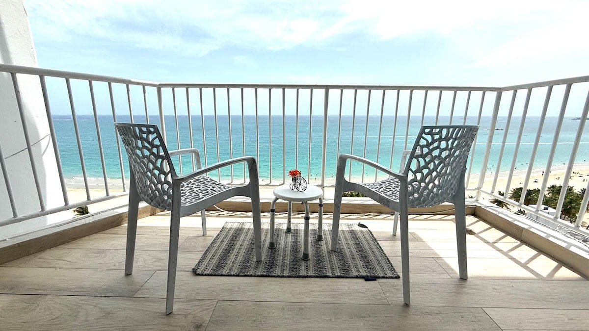 Hi. Looking for a beachfront apartment? Look no further! This is a beachfront 1 bedroom apartment that sleeps 2 in the best beach in San Juan! 15min from Old San Juan, 7min from the Airport, near shops, restaurants, hotels, casinos, nightlife, and a vibrant walking district. Hear the ocean waves, feel the breeze, enjoy the sun! The building has a private beach entrance, basketball court, tennis court (currently closed), pool, gazebos, bbq area, and more! Welcome to the Island Living experience!