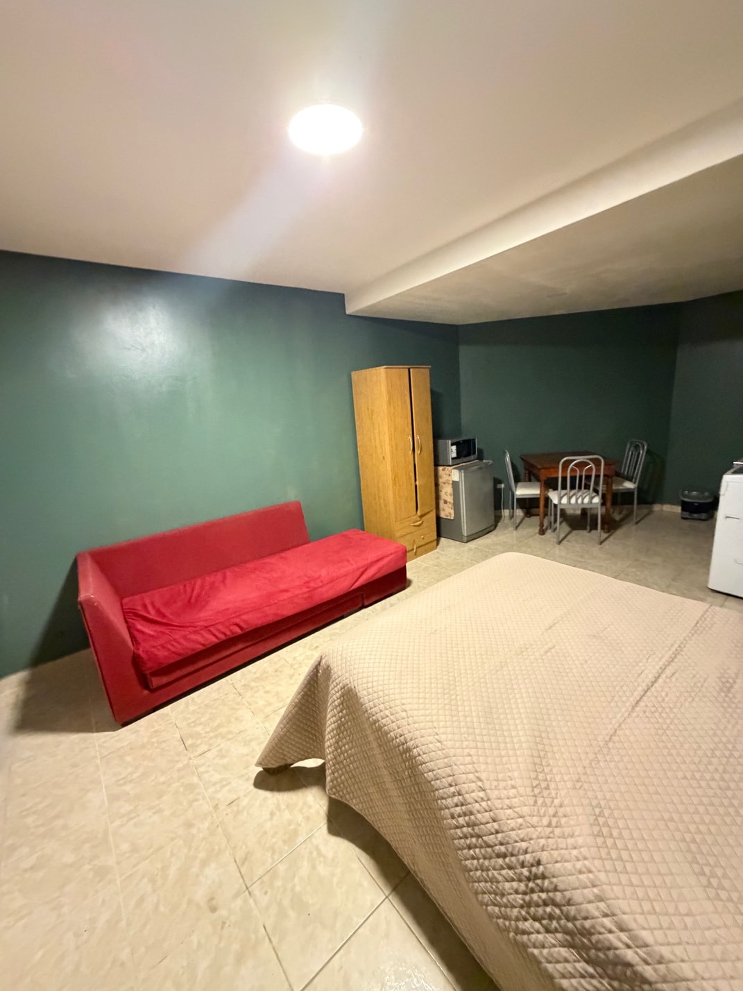 Capacity for 3 adults comfortably or 2 minors comfortably on a sofa bed. It has only one room with a double bed and 1 armchair bed. This unique place has its own style.