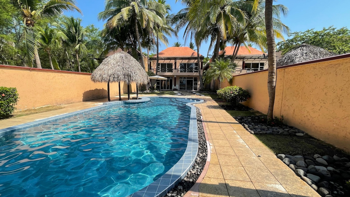 Escape to a romantic beach house with private access to the sea and an exclusive pool. The social area, combining a living room with ceiling fans and TV, dining area, and basic kitchen with an electric stove, opens to the outdoors, creating a perfect tropical ambiance. Directly in front of this area are the covered pool and tropical garden. Relax in the bedroom with air conditioning. Wi-Fi is available throughout the house. Ideal for couples seeking privacy and peace by the beach.