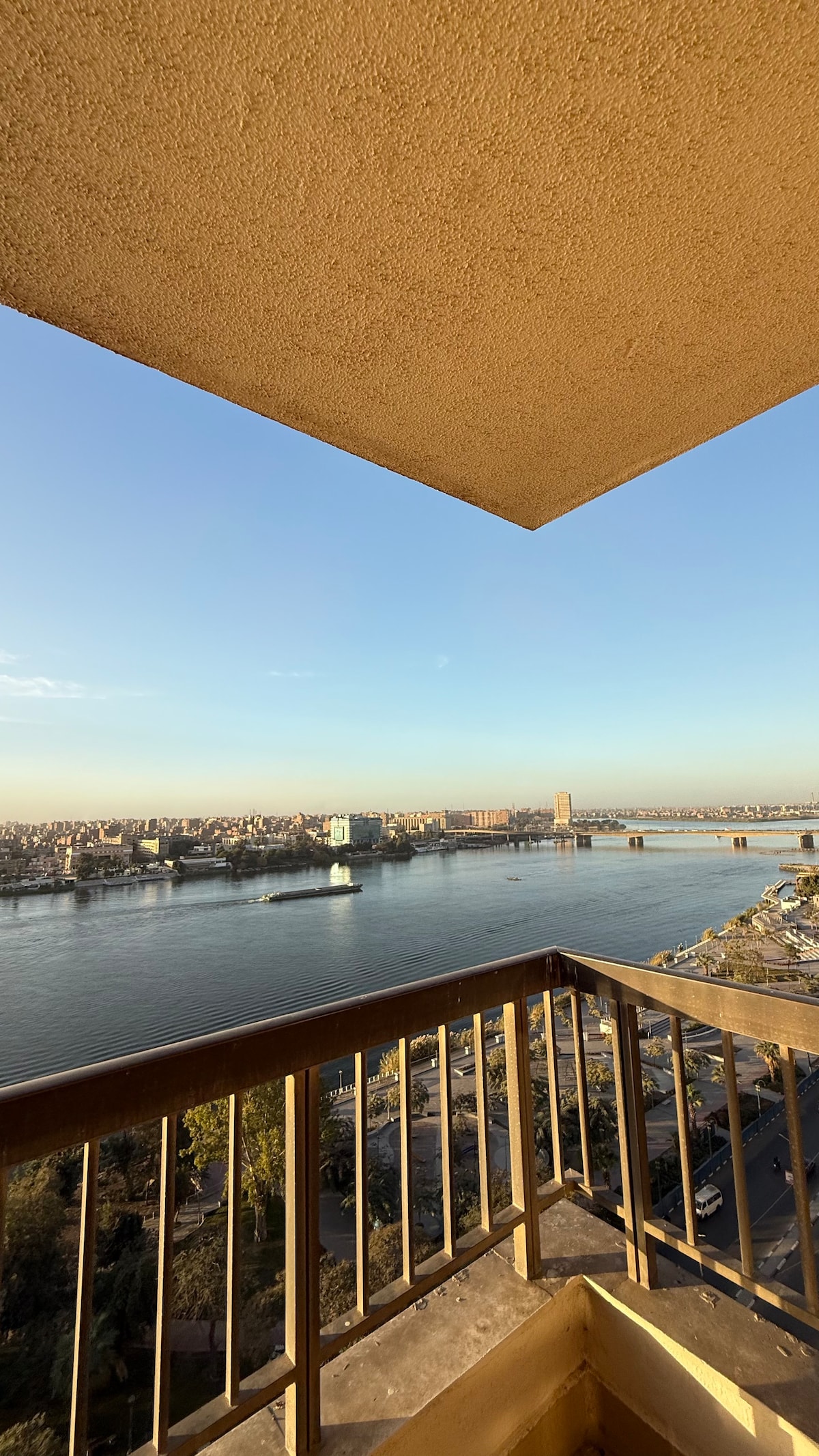 Luxury Apartment with Panoramic Nile View in Cairo This large apartment offers stunning Nile views, 3 comfortable bedrooms, 2 bathrooms, and a balcony with a coffee corner. All rooms are air-conditioned. Equipped with a smart TV, a fully stocked kitchen, and more. Perfect for families or individuals looking for a relaxing stay in Cairo. Surrounded by all daily essentials.