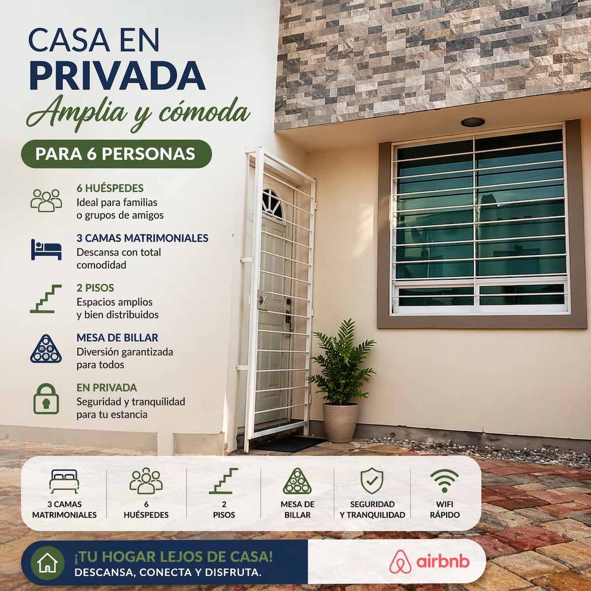Complete house, closed parking, garden, service patio with roof. Quick access to the Pachuca-Cd. road. Sahagún. 10 min. drive to shopping malls such as Aurrerá, Chedraui, Soriana, etc. 15 minutes from the Feria facilities, 20 minutes. Explanada Pachuca, Galleries, Gran Patio. If you come for work or business reasons, I can bill you, ask in message for more information. Internet and Netflix are available.