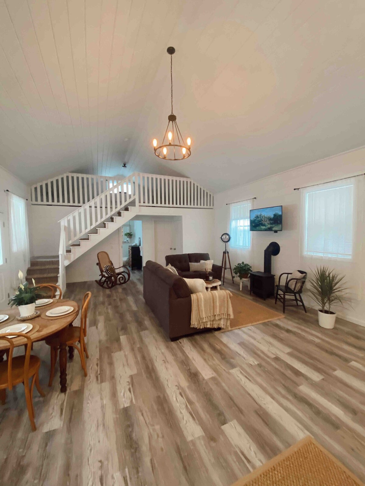 Pet Friendly! This unique place has a style all its own. We are located within walking distance to beautiful downtown Bemus Point, New York. Our cozy cottage is custom built by a local Amish crew. The interior and exterior are planked with regional wood, whitewashed for a true airy summer cottage feel. Our one of a kind space offers you a small space living experience while feeling bright, open and spacious.