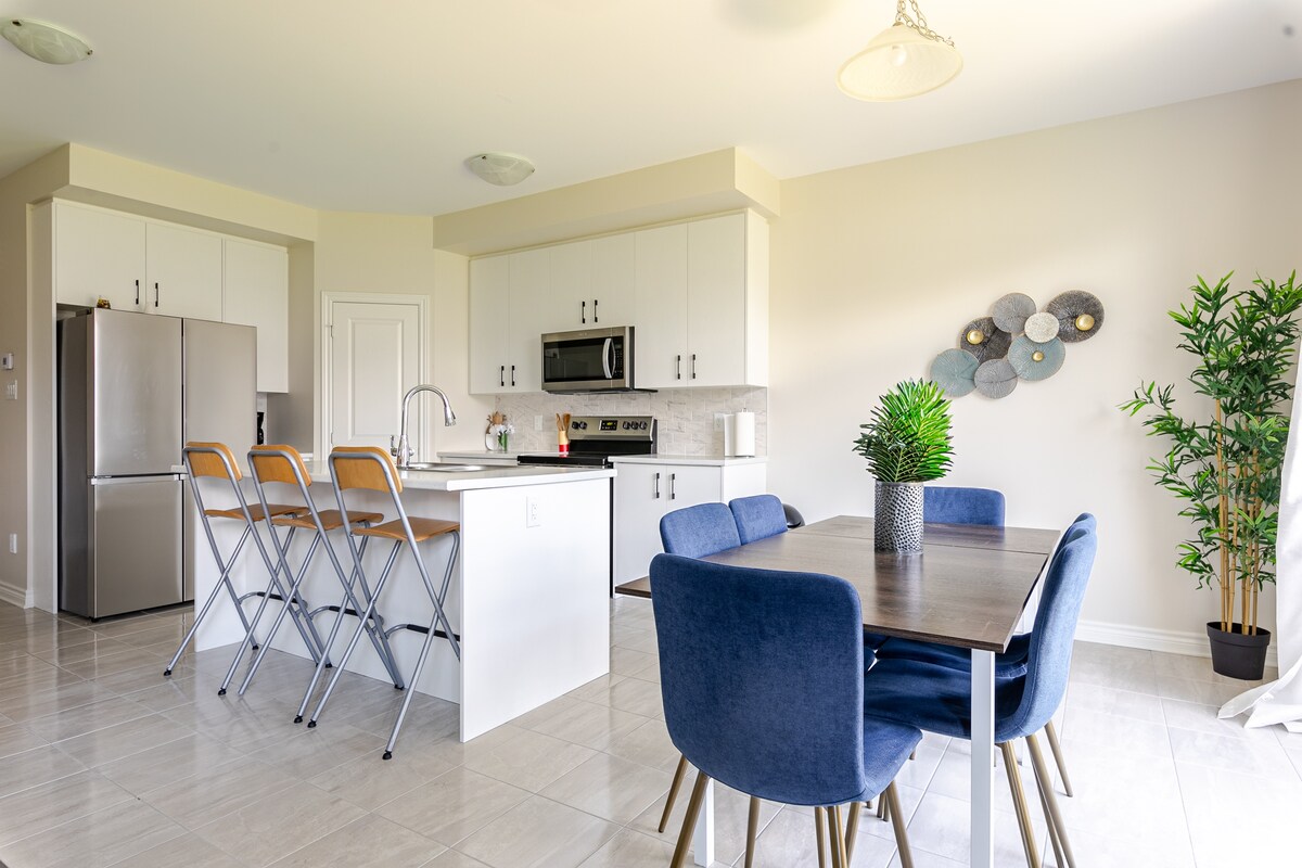 Less than 14 minutes away from Downtown Ottawa, this newly built 2021 modern and open concept townhome comfortably accommodates large groups. It is close to many amenities such as Movati, Landmark Cinemas, Walmart, Canadian Tire, Moxies, Lonestar, and much more. This home includes 8 beds, 4 bedrooms, 3.5 bathrooms, a large breakfast bar area, a private office space, 10ft ceilings across the main floor, a warm and modern living and dinning room area, new washer and dryer, and much more.