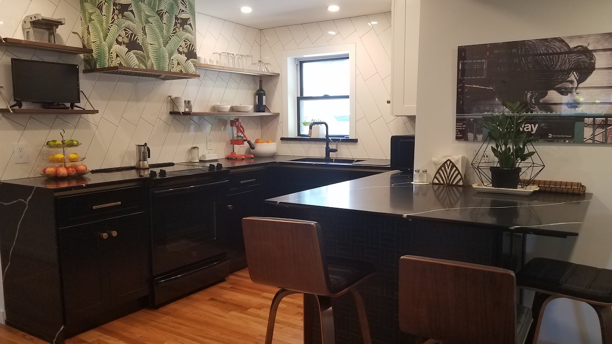 Downtown Binghamton Location walk to Arena, bars and restaurants. Completely renovated unit, urban eclectic Decor with all the comforts of home. Great stay for events at the Arena, SUNY Binghamton or Professionals work stay. If you need more space please ask about our second apartment at the same location. This a replica unit on the second floor which can have an open feel from unit to unit.