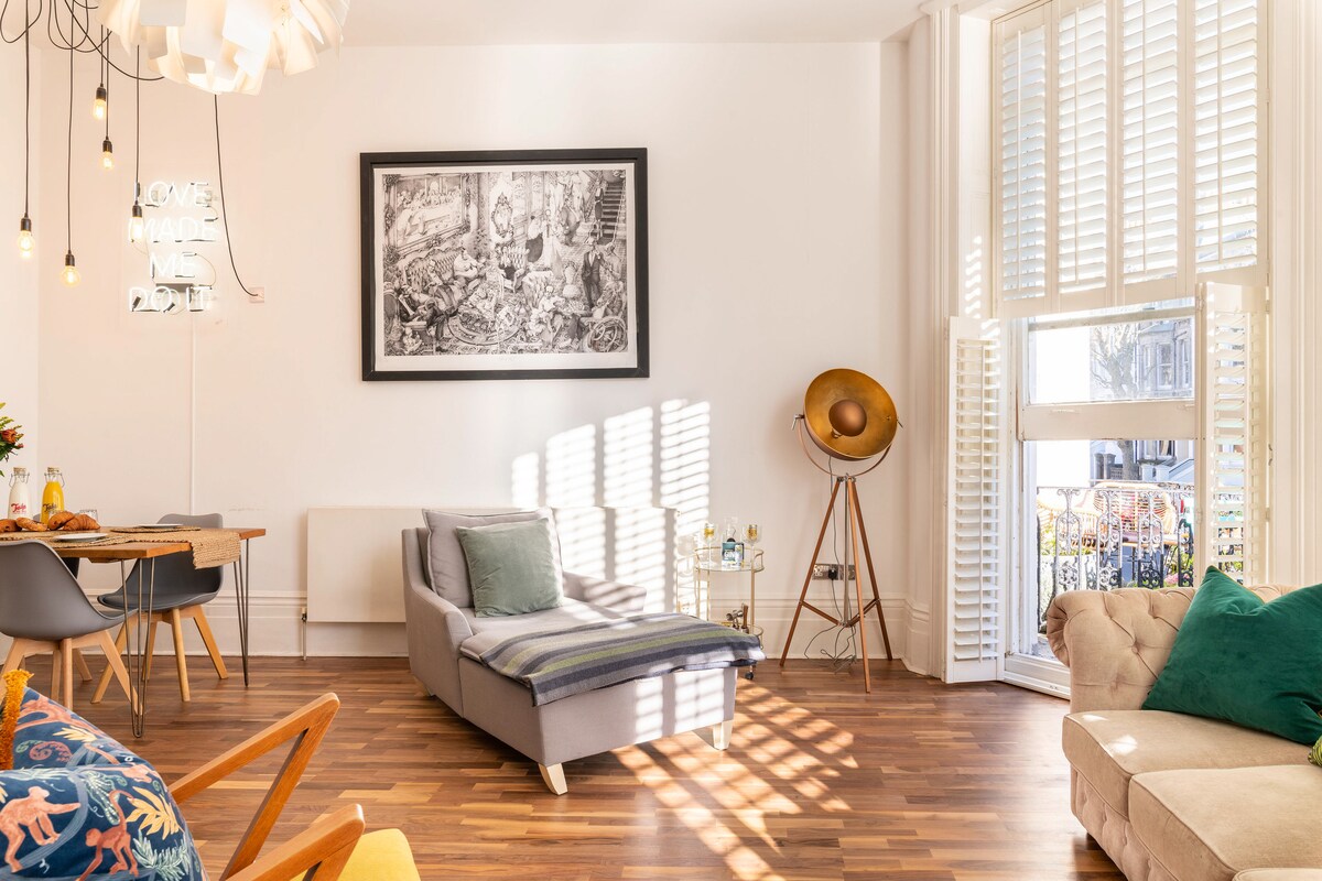 Spencers Apartment is fantastically situated just 10 mins walk down into the heart of the city. The fresh, interior design of Spencers Apartment subtly captures the essence of the historical Georgian splendour that Bath is so famous for, yet has been beautifully brought up to date with contemporary styling and highest quality finishing throughout. Large bay windows enjoy a lovely view over the city.
