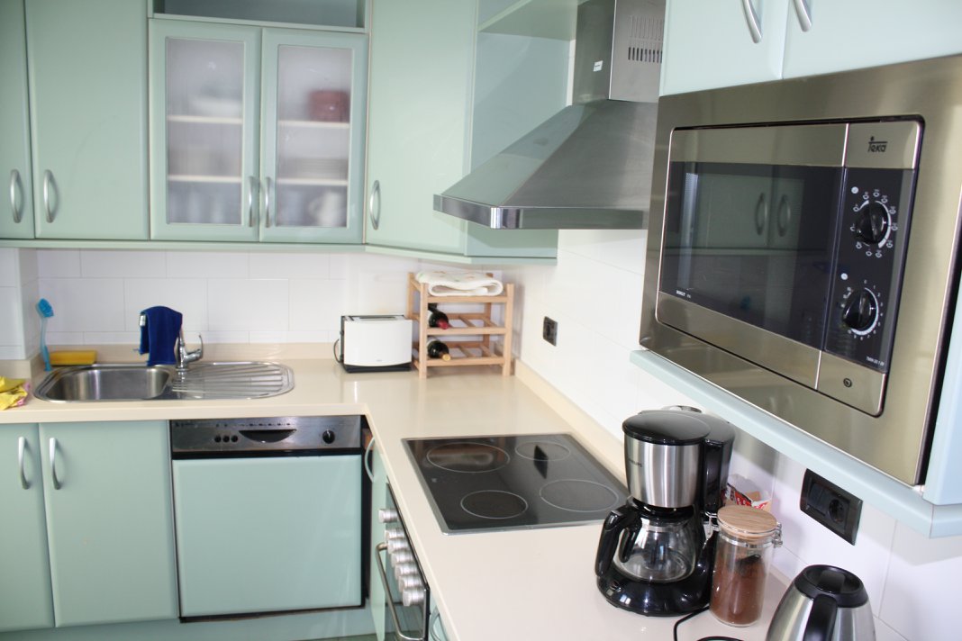 The apartment is on the 5th floor of a well-kept complex with elevator, garden, pool and children's pool. Parking is available in a courtyard. The apartment is equipped with everything you need for a stress-free vacation. The spacious balcony protects against wind, but lets in the morning sun. The beach promenade is about 2 minutes' walk. There is an elevator to the beach, shops, bars and restaurants. It is about 5 minutes to the beach.