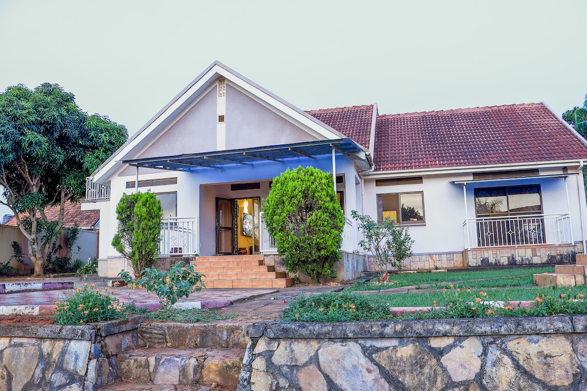 A large, serene compound with a uniquely built home. Having breakfast or dinner at the outside veranda is a relaxing experience, right at your doorstep. The unique architecture connects the living room, dinning and kitchen as if it is in one space. With three bedrooms, this is an ideal place for a family or a couple of friends. The place is fully equipped, ideal for both long and short stays. Mind that Kampala experiences power black-outs every now and then and currently we don't have back-up.