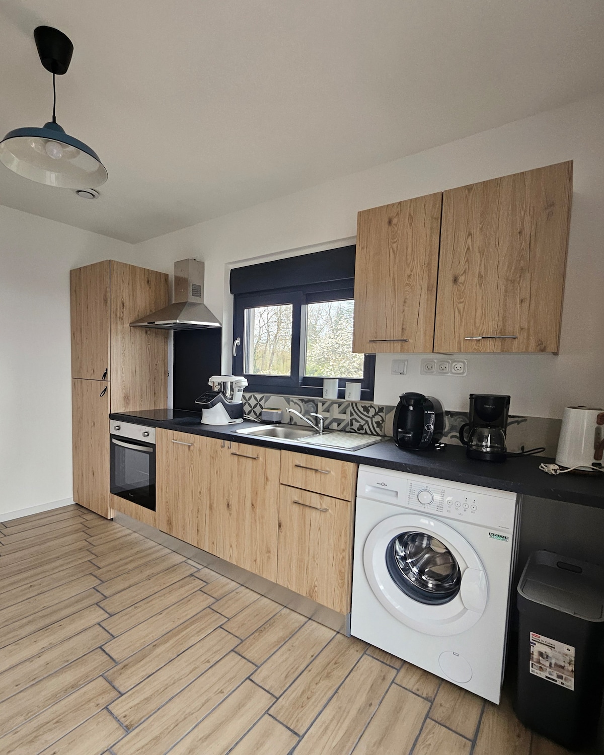 Small house of 36 m2 ideally located in a small quiet village in the heart of the Puy chain. Close to all shops and bakery 300 m away. 10 min from Chatel Guyon, 15 min from Clermont-Ferrand, Vulcania and 50 min from the Super Besse ski resort. Whether you're a mountain enthusiast or a heritage buff, this place will meet your needs! Consisting of a 20 m2 living room with open kitchen, a 10 m2 bedroom with a double bed, a dressing room and a bathroom.