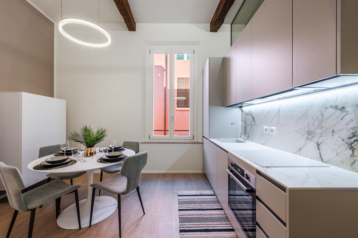 The apartment is located in the historic center of Modena, in one of the most characteristic areas of the city. A few metres from Osteria Francescana, a short walk from the Cathedral, the Albinelli market and the Academy. Cucina, 2 bagni, camera da letto e soggiorno. The apartment is located in the historic center of Modena, in one of the most characteristic areas of the city. A few meters from the Osteria Francescana, a stone's throw from the Duomo, the Albinelli market and the Academy.