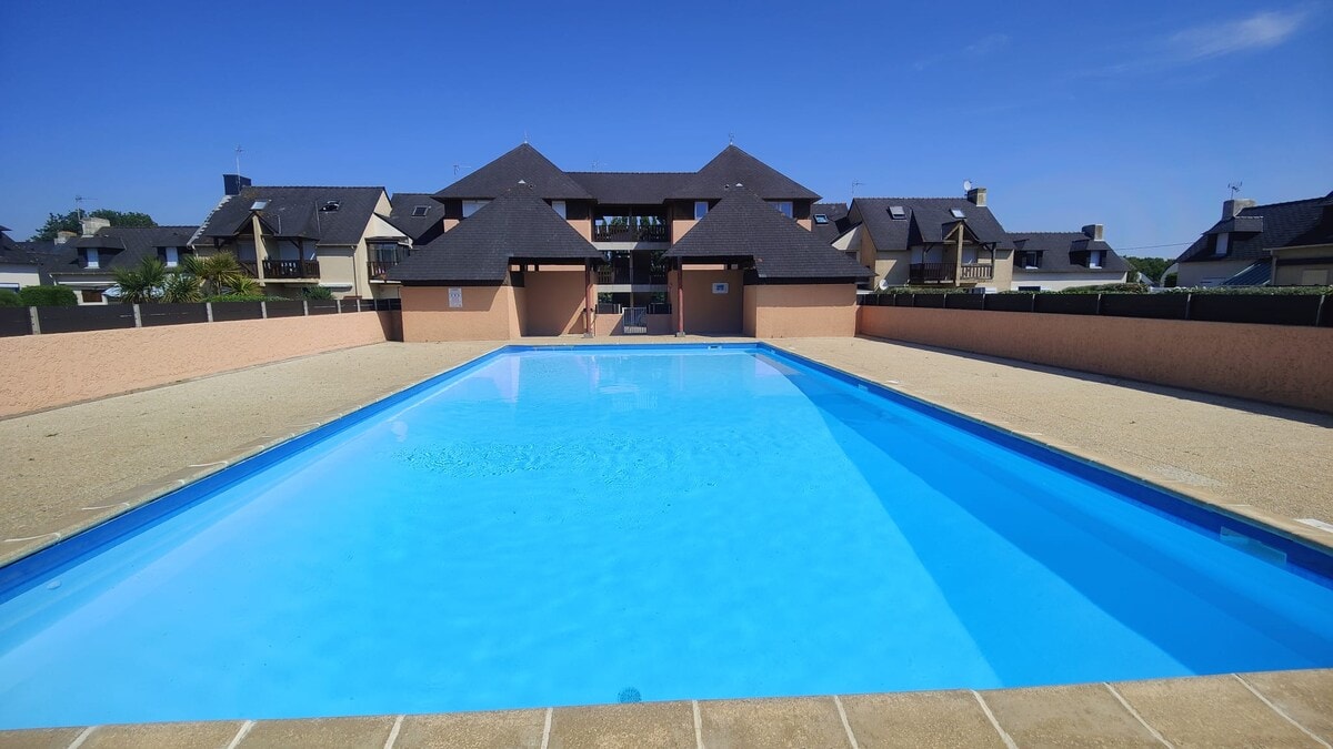 Agréable maison de 36 m² pour 4 personnes dans résidence privée. Jardin privé, espace terrasse avec salon de jardin. 2 places de parking. Piscine de 12m x 6m, chauffée à 28° et couverte (ce qui permet la baignade peu importe le temps 🙂) , ouverte du 4 Avril à fin Septembre, commune aux 18 autres logements de la résidence. Aire de jeux pour enfants. Accès rapide à la plage (900m) à travers les dunes (par la piste cyclable).