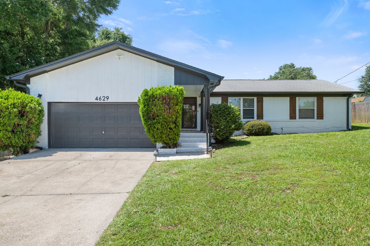 Visit historic Milton while staying in our comfortable bungalow, which is close to everything making it easy to plan your visit. Nearby downtown boasts music, festivals, breweries, restaurants and farmers markets. Ride on site bikes on Blackwater Heritage Trail. Explore Marquis Bayou and Blackwater River in on site kayaks. Pick blueberries in season. 40 mins to Navarre Beach. 30 mins to Pensacola. Kitchen w/fridge/micro/toaster oven/dbl burner cooktop. Queen bed with comfy Serta mattress.