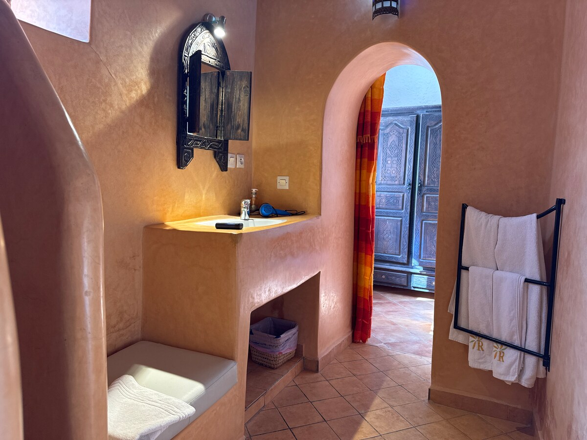 Berber Tradition Room – Moroccan authenticity in a chic version. Immerse yourself in the atmosphere of an authentic and soothing Morocco in the Eucalyptus Riad. Stylish and comfortable room inspired by Berber traditions. Queen size bed, private bathroom in tadelakt. Free access to the garden and pool. Catering, massages and Turkish bath ritual on site. In this room, nothing is superfluous. You sleep well, you feel protected, you naturally slow down. Breakfast is included.