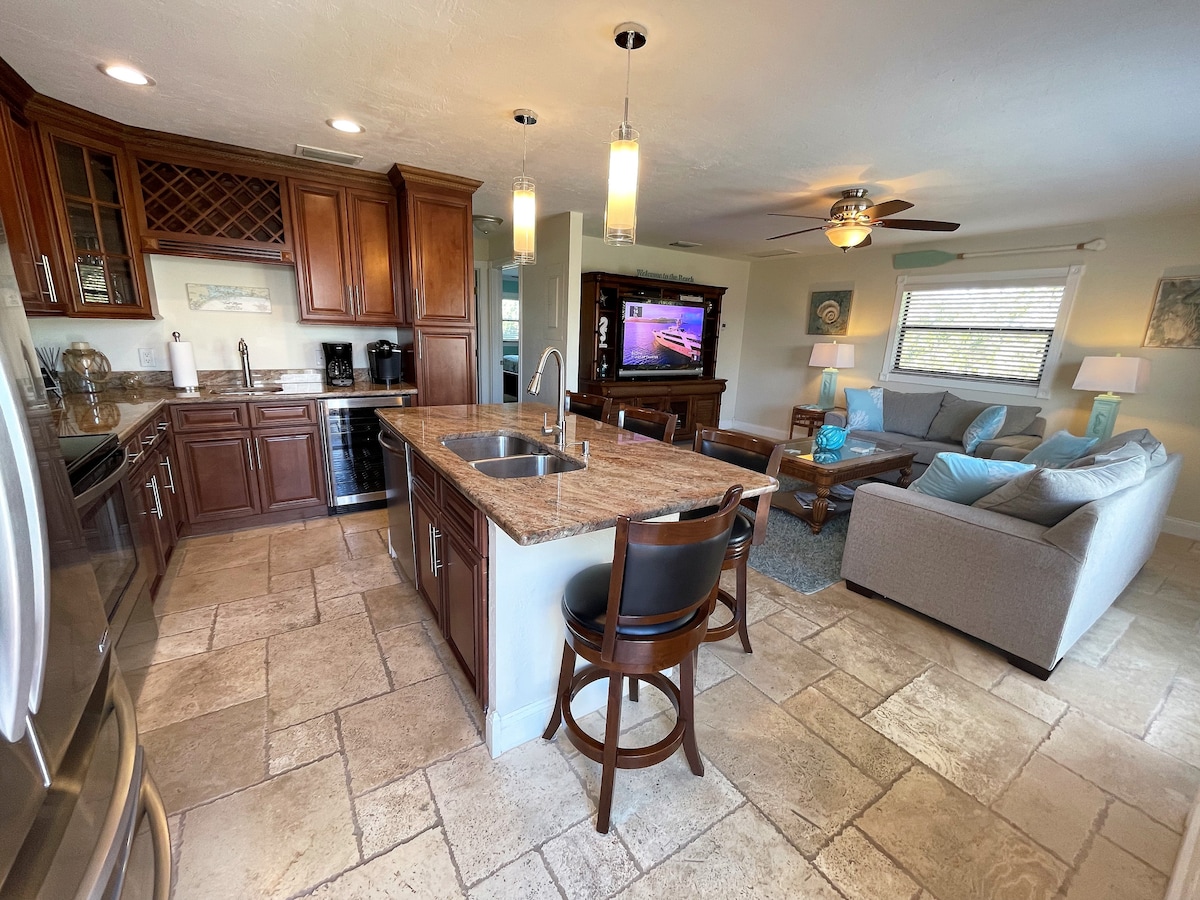 Deck overlooking a mangrove bay, private dock, abundant wildlife & sea life — this is real Florida. Fish off the dock, watch the birds, or just relax in your own space. Skip the stuffy hotel. Walk to Ft. Myers Beach or hop the golf cart shuttle. Bars & restaurants right on San Carlos Island. Key West Express day trip next door. Nature, beach & nightlife — all from your dock.