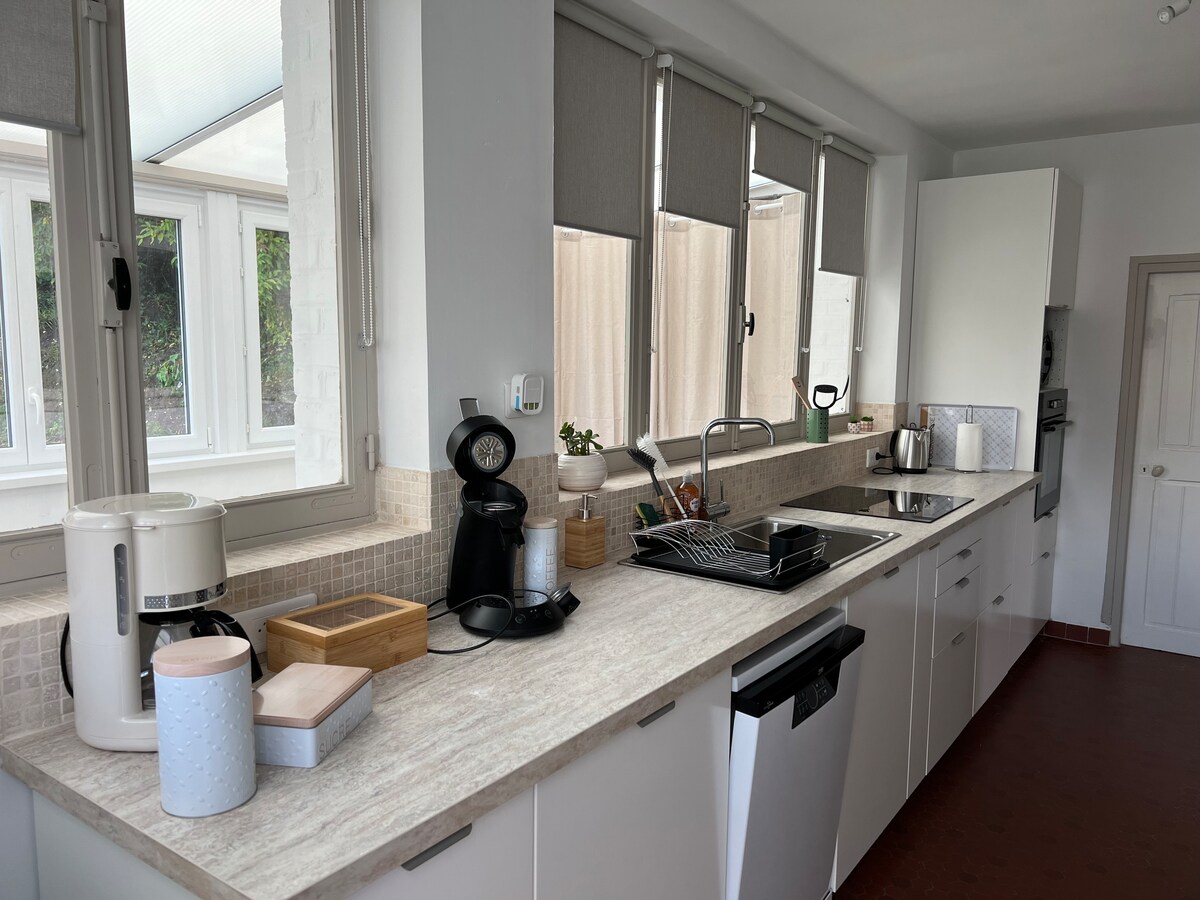 Maison lumineuse à la campagne dans une ancienne ferme carrée avec de grands espaces verts et arborés à 2 minutes du Cateau-Cambrésis. 3 chambres, grand séjour avec cuisine ouverte toute équipée (induction, Nespresso,lave-vaisselle, cave à vin) Chambre 1: 1 lit 200x180 Chambre 2: 1 lit 140x180 Chambre 3: 1 lit 90x180 Matériel bébé à disposition (lit parapluie, chaise haute, baignoire) Draps et linges de maison fournis Lave-linge et sèche-linge Terrasse et barbecue au gaz Coin bureau disponible