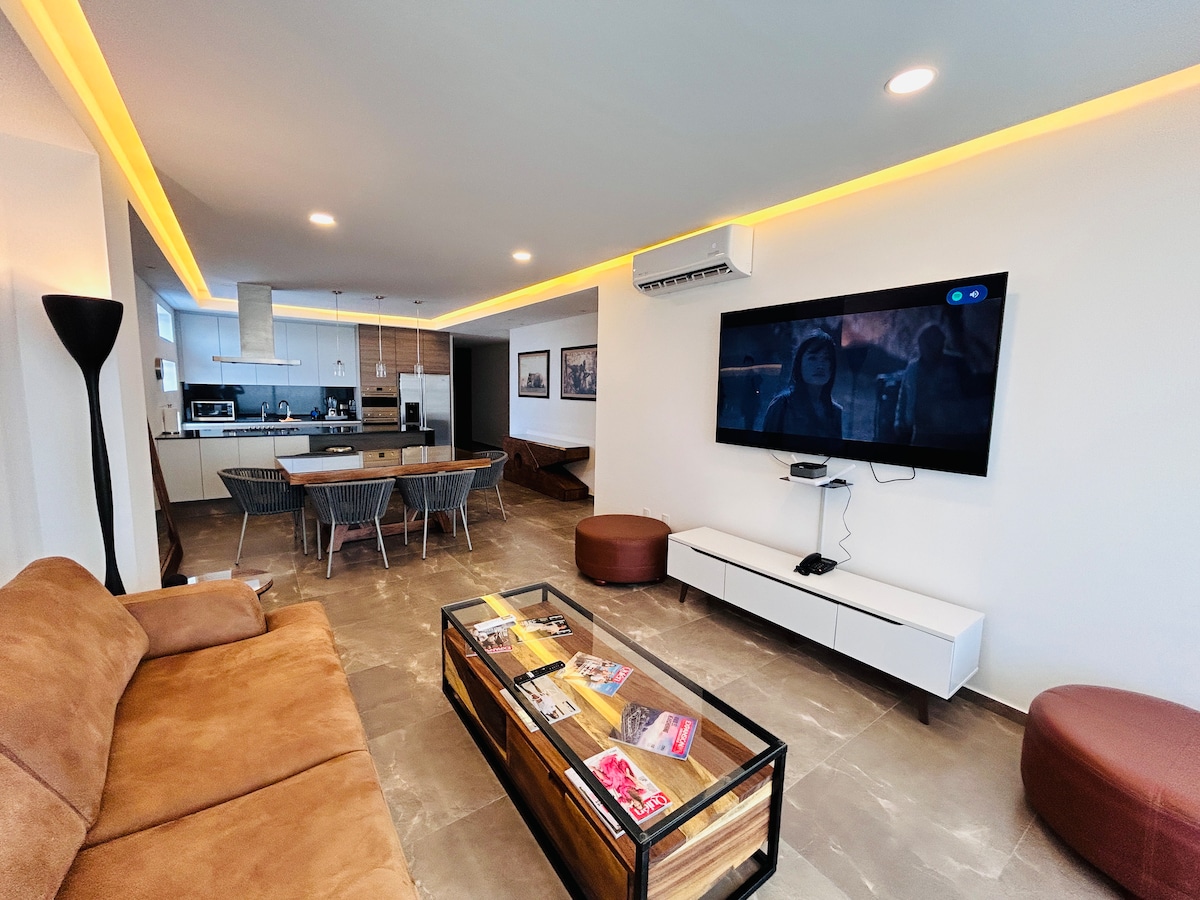 Spacious, cozy apartment, ideal for working with excellent internet! 100 Megas.Two large bedrooms both with air conditioning, full bathrooms, walk-in closet, and ceiling fan. TV room where a fifth person can sleep. Living+dining room with a large window, and 4 portable fans to move around any area. Fully equipped kitchen includes dishes for 6 people. Previous guests have praised our apartment for its stylish decor, comfortable amenities, and prime location near vibrant cafes and restaurants.