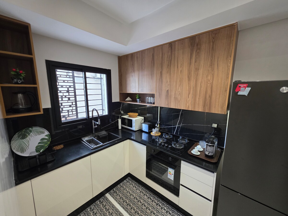 A one-of-a-kind, individual 2-bedroom apartment with a garage that can accommodate 2-3 cars. This apartment has been recently renovated to offer exceptional comfort and a very high standard. Located just 40 minutes from Hammamet, 20 minutes from the airport, and a few minutes from local shops and supermarkets, it enjoys a quiet and friendly setting. We offer this apartment at an affordable price, with a very responsive host to meet all your needs.