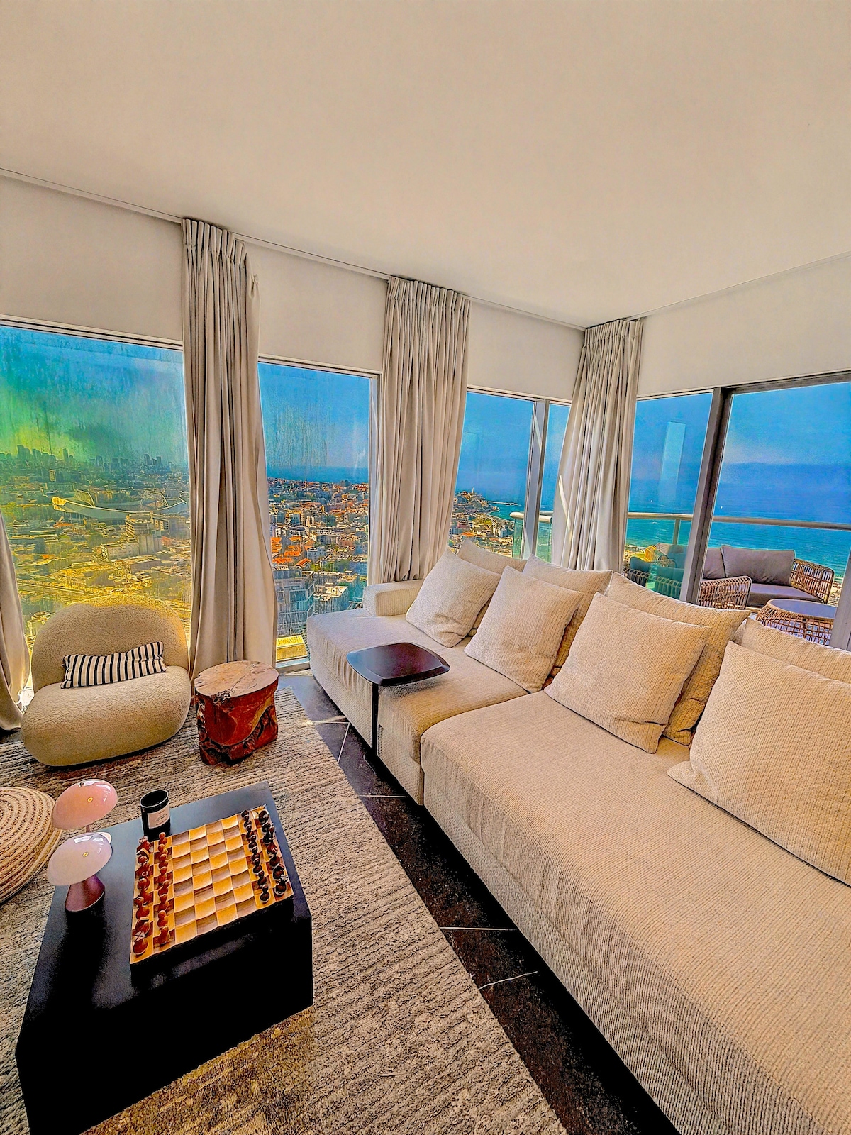 We offer multiple identical apartments in the building! Located in a brand new residential project, steps from the beach and the famous TLV boardwalk. Step out from the building to what is the best location in Israel! The flat overlooks the city from it’s large balcony. There is a spacious space with a bed nook, closets, stand up shower, living room with smart TV, fully equipped kitchen, Nespresso, dining area, AC, washing machine, dryer & more! Parking included with request!