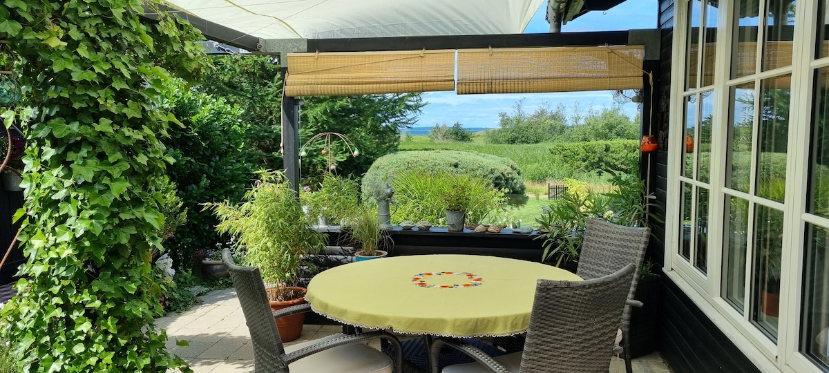 At bo i vores 75 kvadratmeter store ferielejlighed giver vores gæster en helt særlig fornemmelse af ferie. Når man åbner døre og vinduer, strømmer lydene ind fra skovens, havens og havets fugle. En duft af frisk havluft møder ens næsebor. Også lyset oplever vores gæster, som noget helt særligt. Specielt når aftensolen sender sine stråler ned på de omkringliggende øer, må man knibe sig i armen for at sikre sig, at man ikke drømmer.