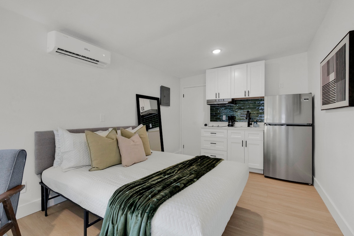 This relaxing 1 bed 1 bath space in Downtown Orlando boasts a lush fenced-in private yard, hot tub, and fully equipped kitchen. We pride our studio on comfort, wellness, and delicate attention to detail to experience the magic of a trendy space in the heart of Orlando. Enjoy brand-new remodeling, furnishings, and appliances. This is the back unit of a 2-unit property. We include: ✅50" TV ✅Luxury mattress ✅Fiber optic Wi-Fi ✅Decaf Coffee & Tea ✅Disney Plus, Hulu, Max, Netflix ✅ Free Parking