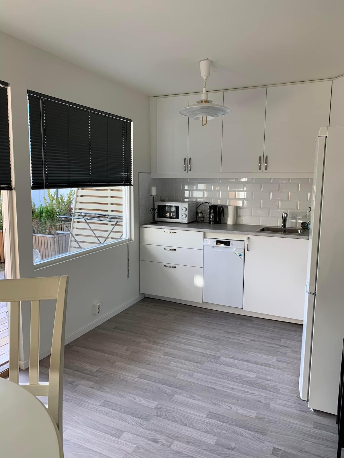 Enjoy a stylish experience in a centrally located place. In the middle of Skien city center with a great view of the city center and a newly established park. There you will find a French bakery and pizzeria. The apartment is fully furnished and has ventilation and large, great windows. Heating cables in the bathroom.
