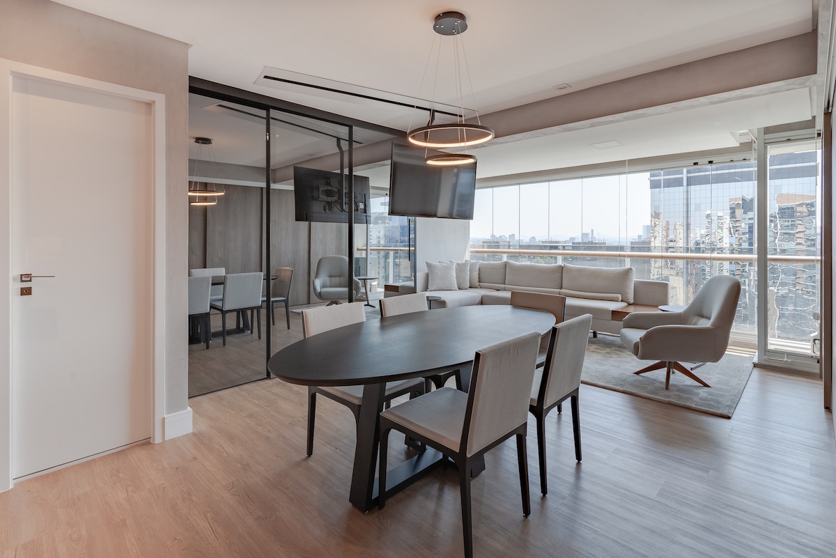 Experience One Eleven in Vila Olimpia. This modern apartment features large windows with breathtaking city views and natural light. The unit boasts 600 Mbps internet and a 4K HD TV. For total comfort, it has a Hot/Cold AC system: 27,000 BTU/h unit in the living room and 10,000 BTU/h in the bedroom. The bedroom is quiet and dark for a restful sleep. Impeccably maintained, you’ll be walking distance to top restaurants and business hubs—a safe, upscale retreat with a stunning urban backdrop.