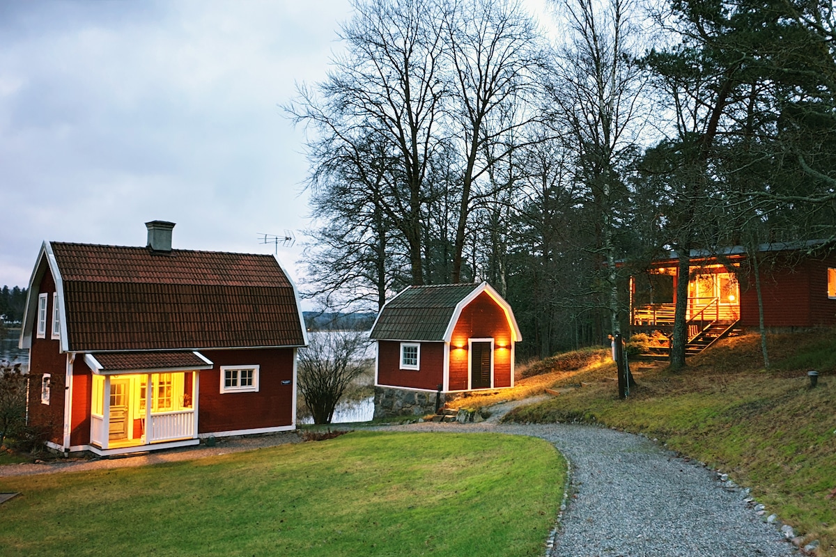 After a lovely night in the garden house, breakfast is served on the jetty next to the large pond. With a cup of freshly brewed coffee in your hand, you look out over the beautiful, park-like plot where there is always something exciting to discover. With Lake Mälaren's glittering waters just a short walk away, it's easy to be lured to a swim at Stockbybadet. We are close to the big city but still in the countryside and with walking distance to both a grocery store and a lovely pastry shop, you will be happy to stay a little longer.