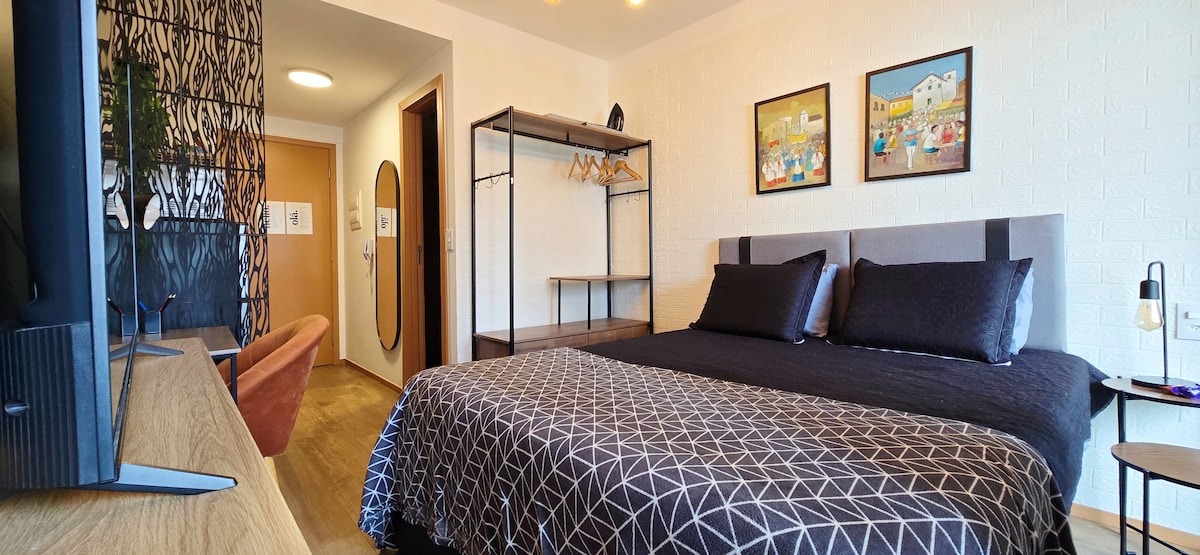 Functional apartment (bedroom & living room) 30m2 contemporary style in a modern building on one of the main roads of the Barra neighborhood, an area of relevant landscape, tourist and cultural interest in Salvador. Excellent location (just 160 meters from the beach; 300 meters from Farol da Barra; a 10-minute walk to Porto da Barra). Rua Marquês de Leão, and its surroundings, has excellent bars, restaurants, cafes, pharmacies, markets, etc., and leads directly to Farol da Barra, the main point of the region