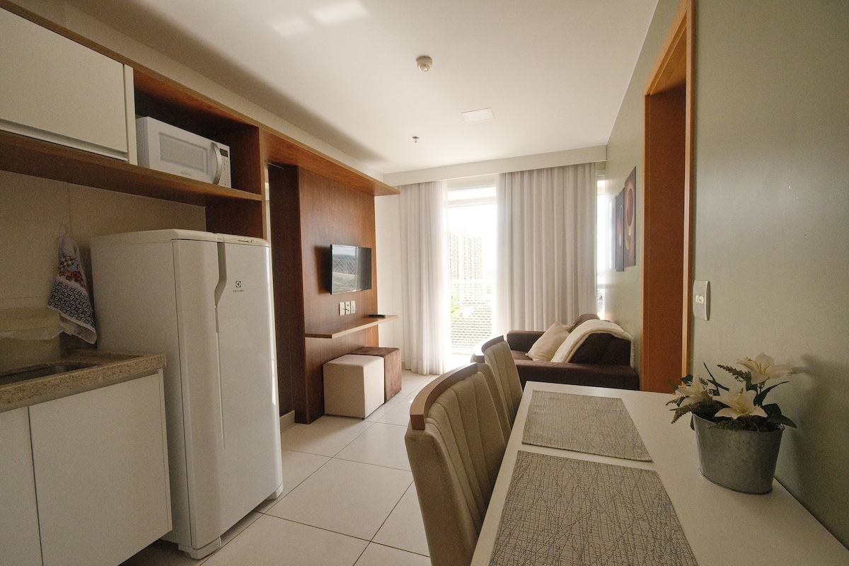 Life Resort is located in one of the best neighborhoods in Brasilia. On the shores of the lake, the resort condominium has a complete leisure area with heated pools closed for maintenance on Mondays (on holidays that fall on Monday, maintenance is on the next day after the holiday), restaurants, coffee shop, bar, market, beauty salon and much more. The complete apartment has everything you need for your stay. Full kitchen, linens and towels, 43" Smart TV and work area.
