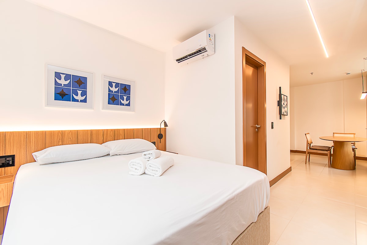At the Cullinan Hplus Premium hotel. Very new and contemporary. Amazing location! Two malls across the street. Great tourist spots to go on foot. Charming, finely decorated and furnished unit. On the highest floor, with a beautiful view of Brasília and Asa Norte. 29m² luxury suite with king bed. Well equipped with several items for your convenience. Acoustic insulation on the windows for a great rest. Smart TV. Garage. Swimming pool, gym, sauna and restaurant. Check in 24 hours at reception.