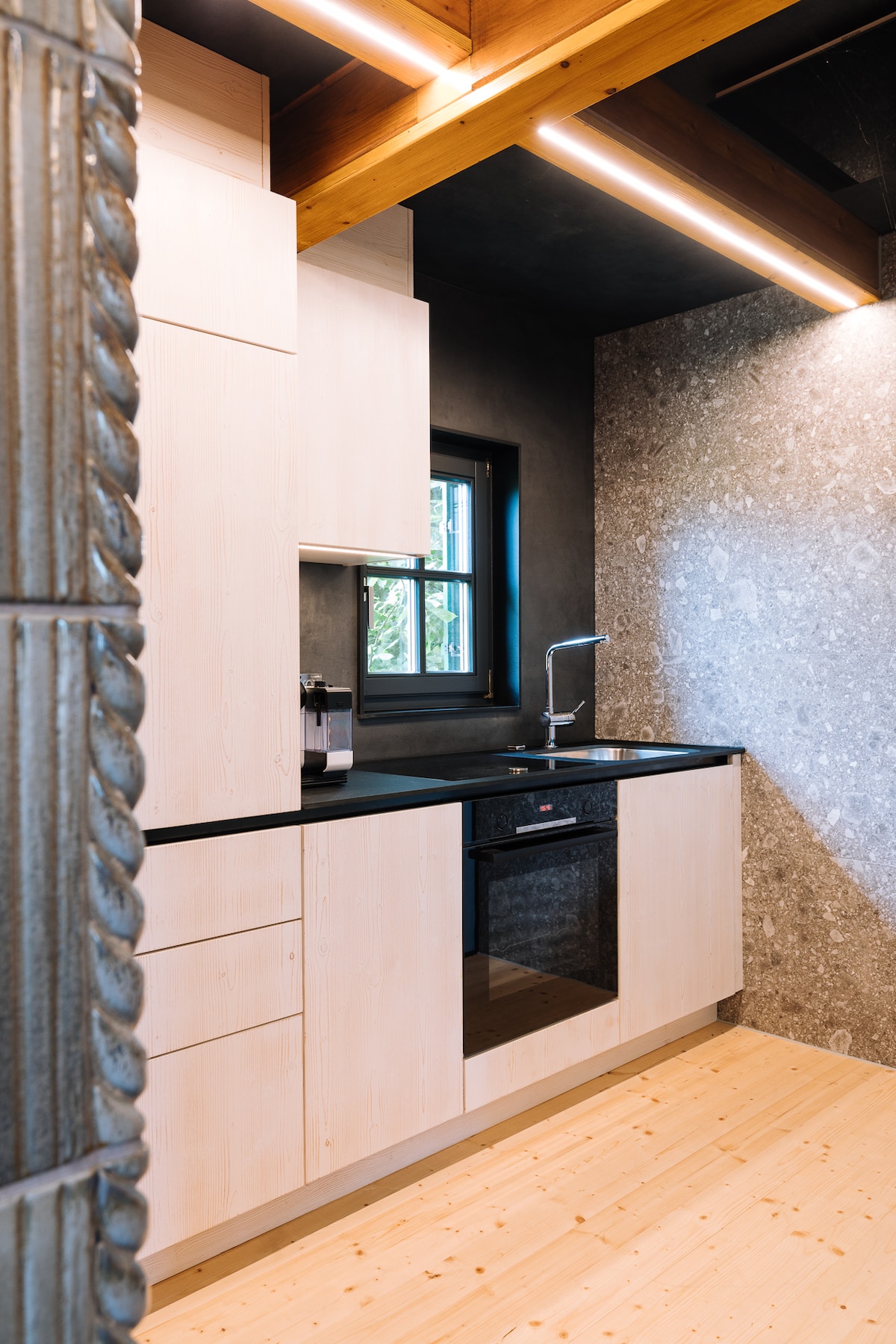 This modern apartment lays on the magical altitude of 1111m and can accomodate 3 adults. It has a wonderful mountain view you can enjoy while relaxing on a roof covered terrace. It offers a private hot tub and sauna. Kitchen is fully equipped with an oven, toaster, refridgerator, toaster and even utensils for you to get creative with cooking. Interior is decorated with Swiss pine wood. There is a parkig space before the apartment and Wifi is availabe throughout the property.