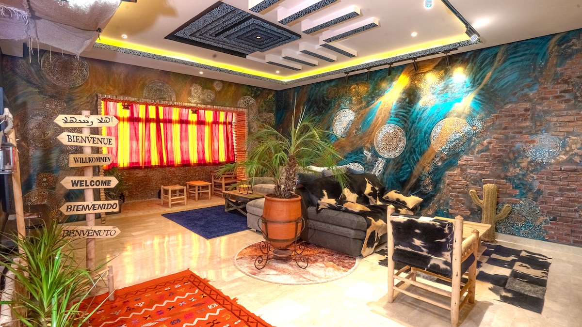 Unique à Fès, cet écrin de bien-être allie authenticité et confort moderne, idéal pour familles/amis (jusqu'à 7 pers avec enfants). Jacuzzi & sauna pour une détente absolue après vos visites. 3 chambres climatisées, TV et literie de luxe : king, queen et lits superposés. Grand salon multi-thèmes avec écran géant : Netflix et Amazon Prime. Cuisine ultra équipée et WIFI haut débit. En plein centre ville nouvelle, accès facile aux lieux historiques, restaurants, cafés et commerces.