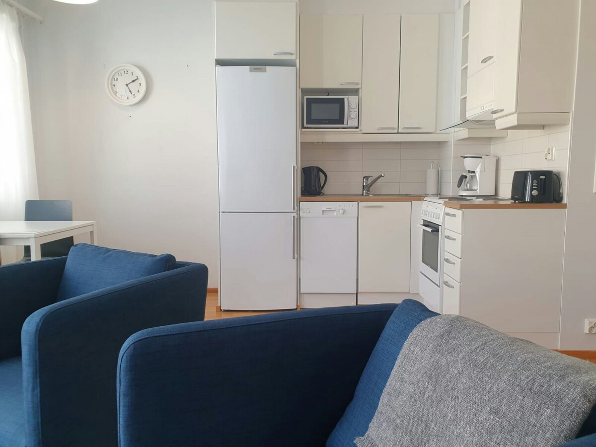 This modern and comfortable studio apartment is for two or a family with two kids. Comfortable and high-quality beds guarantee a good night’s sleep for two while the sofa-bed in the living room is perfect for the little ones in the family. Room is equipped with flat screen-TV, electric kettle, coffee maker, toaster and a hairdryer. Well-equipped kitchen has equipment for cooking, refrigerator, microwave-oven, dishwasher and integrated stoves for preparing all your favorite dishes.