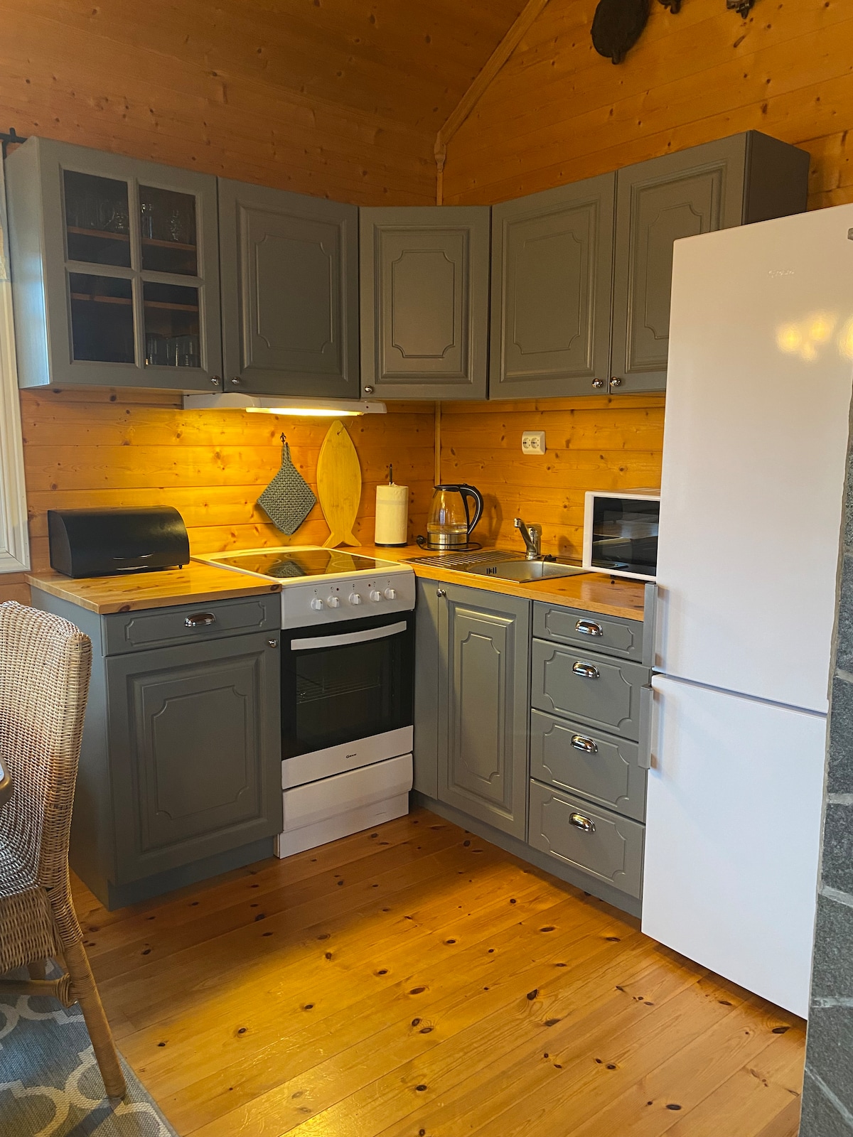 Cozy cottage by the sea. The cabin has 3 bedrooms + an open loft with 2 beds. Well-equipped kitchen with dishwasher. The cabin is located 85 meters from the sea. Good sunny outdoor areas, and gas barbecue. Various children's equipment; bed, chair, swing, sandpit, toys. Road all the way up (see other information). From the cabin there are many great hiking opportunities, kayaking, diving, fishing, etc. To Hanshelleren, which is a unique climbing area, it is about 4 km. 7 km from the cabin there is a shop with a good selection of goods and a restaurant.