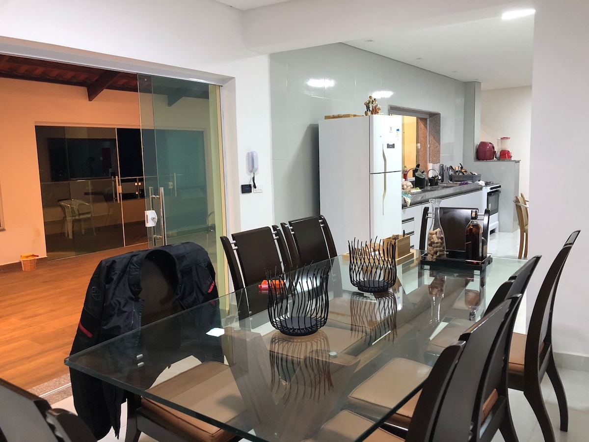 A Casa Sol Nascente de Kátia é adequada para pessoas que gostam de local aconchegante, espaçoso, ventilado e tranquilo. Ideal para descanso e socialização por ter espaços de convivência coletiva, como área de piscina, churrasqueira e sala com lareira no primeiro andar. Todos os quartos têm ar condicionado Split. É numa rua bem localizada e tranquila. A anfitriã é gentil, atenciosa e trata todos com respeito.