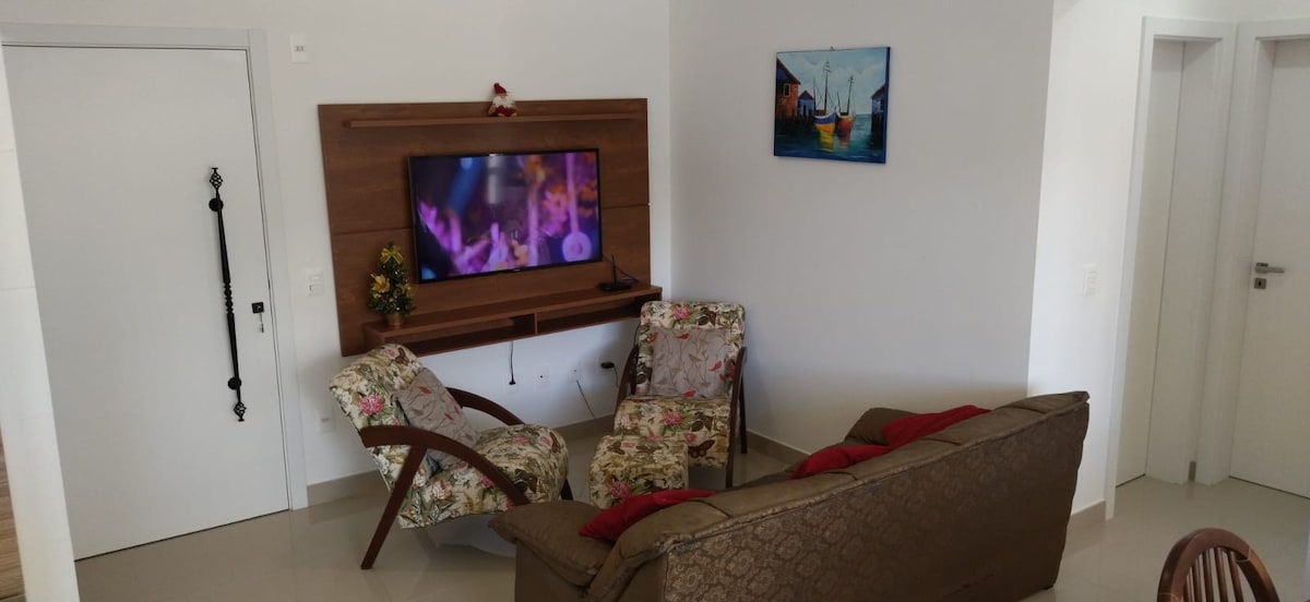 Apartment with 2 en-suites, toilet, air-conditioning in all rooms, Wi-Fi, washing machine, equipped kitchen, bed and bath linens, balcony with barbecue area and stunning view of the blue sea of Palmas. Private covered parking space. Swimming pool on the roof. Close to the beach and the commercial network. We provide bed, bath and table linen, beach cart, umbrella, chairs and cooler. Come and discover Palmas do Arvoredo, one of the most beautiful beaches in Brazil! refugiopalmas