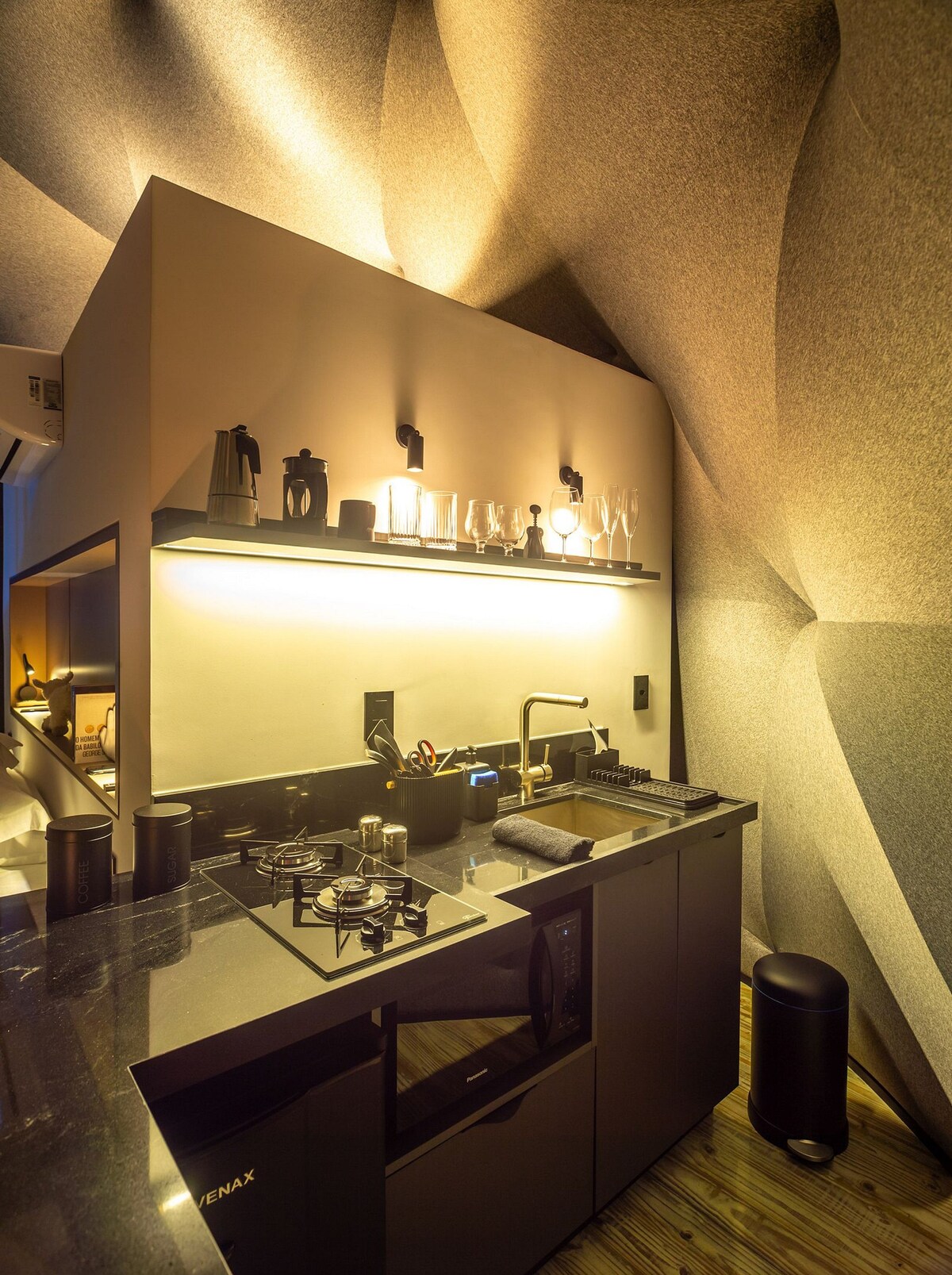 The Dome is in a serene valley, next to a waterfall and overlooking a forest of pine trees. With a full kitchen and air conditioning hot/ cold, offers thermal comfort with sheets and towel warmer, plus robes. On the deck, relax in the jacuzzi with chromotherapy and in the backyard, enjoy the floor fire and swing in total privacy. A unique glamping experience in the middle of nature.