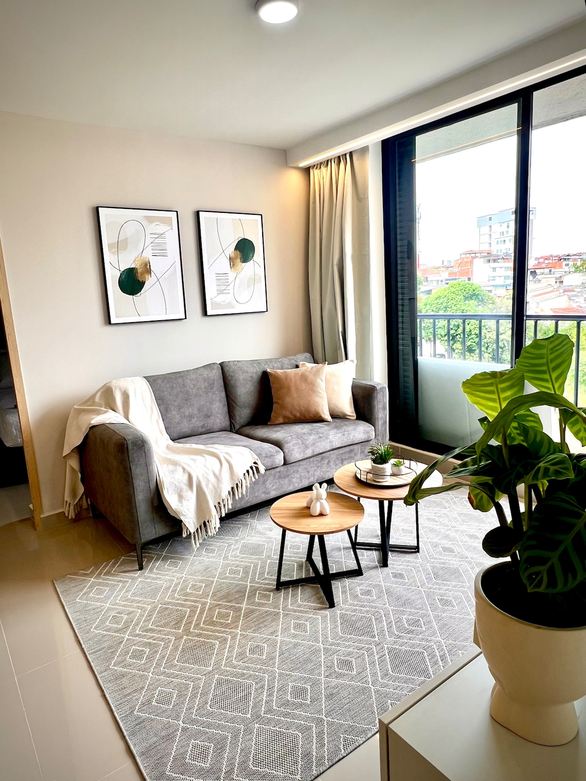 Beautiful and new studio apartment with a view where you can enjoy charming sunsets. Fully furnished with everything you need to have an excellent stay; Living room with sofa bed, dining room, large balcony, Located in a closed, quiet and safe complex. With an excellent area of restaurants, supermarkets, hairdresser and drugstores. Excellent location just minutes from HIC, Foscal, Fosunab, Cardiovascular. Perfect for healthcare professionals, patients, or companions. Make yourself at home!