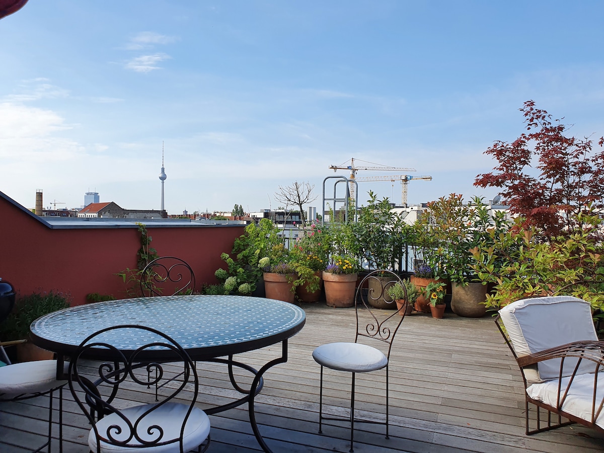 Room, rooftop terrace, Mauerpark, private bathroom
