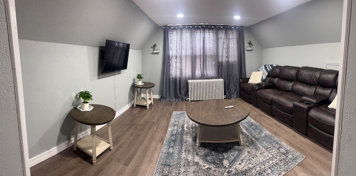 Bright, stylish 2 bedroom UPPER apartment perfect for traveling professionals or couples! Enjoy a roomy living room, fast Wi-Fi, smart TV, and basic kitchen essentials. Located in a quiet neighborhood just minutes from downtown, hospitals, and Marian University. Free private driveway parking included. Your Fond du Lac home away from home! Whether you're in town for work or a long weekend, this cozy and professional space is ideal for rest and recharge.