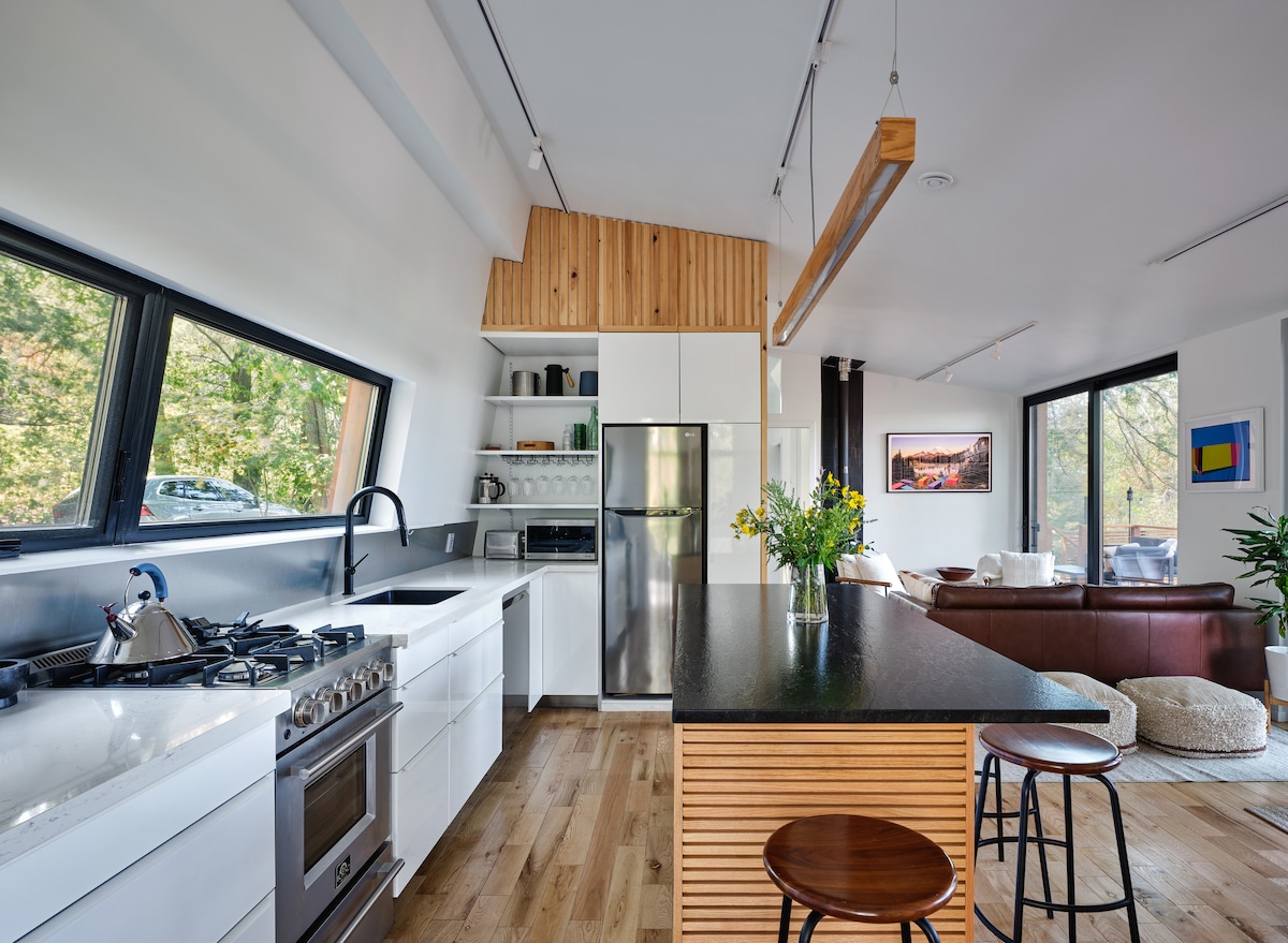 Just 1-hr south of downtown Kansas City & 1hr 15 mins from Kansas City Stadium. A few remaining World Cup dates available! Welcome to the Butterfly Pods, hosted by PodHopping, where eco-conscious living meets modern comfort in our PASSIVHAUS-standard cabins. Immerse yourself in the beauty of the nature with a touch of luxury. Spend your days lounging in a sunken hammock, swimming in the pool, soaking in the hot tub, kayaking on the lake, or gathering around a fire.