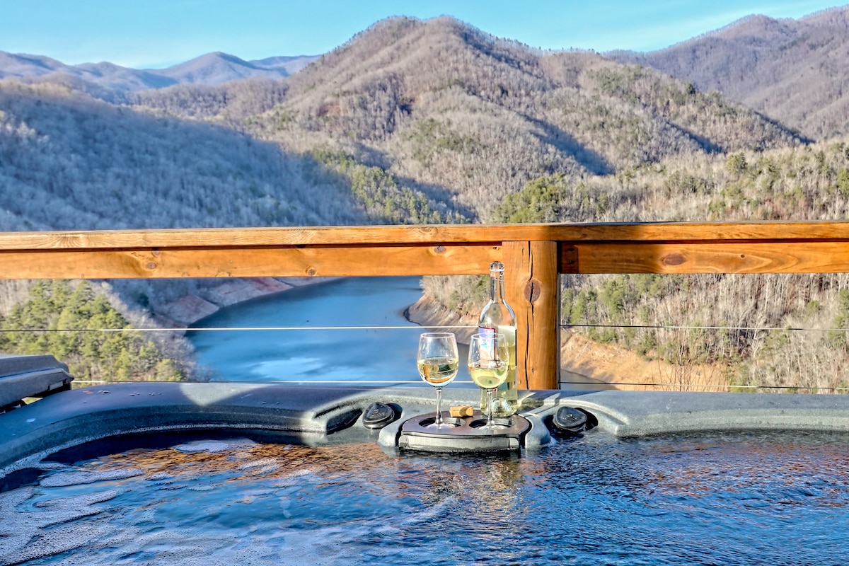 We are open! Sit in the rockers with your morning coffee, eat your meals at the kitchen table or sit in front of the fireplace all while enjoying the amazing view! The hot tub is located on the deck overlooking the beautiful Mountain View. We are just 20 minutes away from Bryson City and the Nantahala Outdoor Center, 10 minutes from Tsali Recreation, 25 minutes from the Smoky Mountain National Park, Cherokee and The Blue Ridge Parkway. There is a book in the cabin with other recommendations