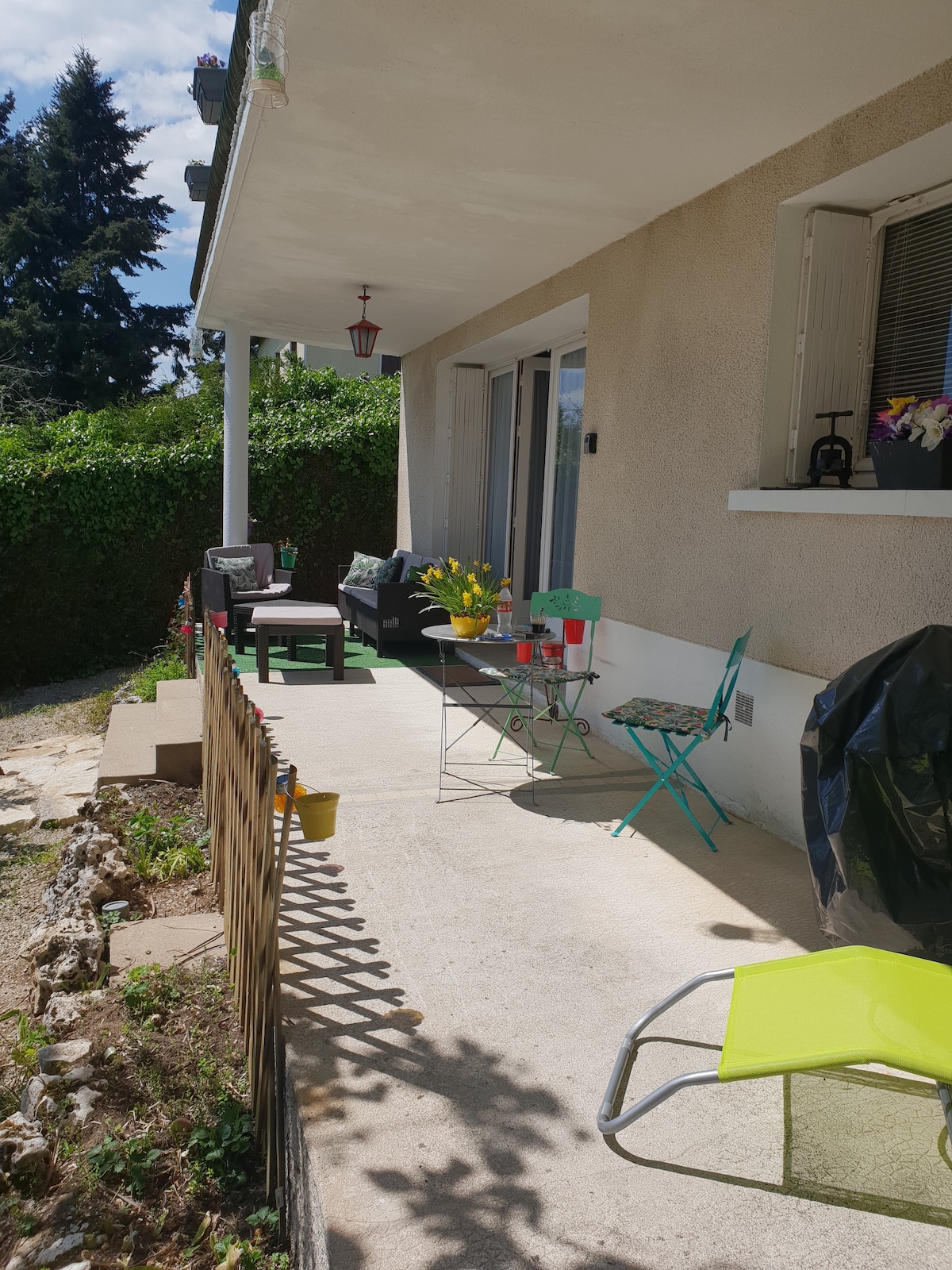 House near Lascaux 4 (15-minute drive) and close to several must-see sites in Dordogne. Quiet in a setting of greenery as far as the eye can see, it is an ideal compromise to combine sightseeing and rest. In a village with all shops: supermarket, 2 bakeries, tobacco, newspapers, 2 restaurants, pond with its open-air café. Located close to RD 6089 and Highway A 89 (4 km). The entrance to the accommodation is independent access from the back of the house.