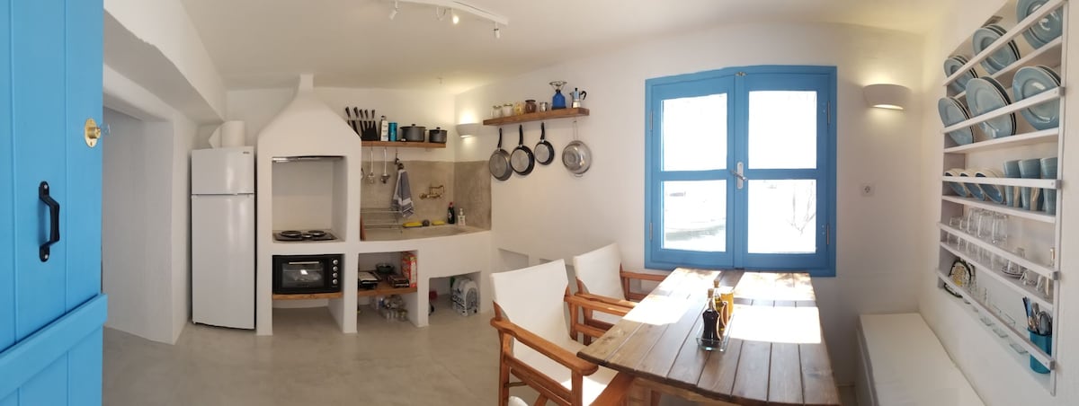 Freshly refurbished studio in Armenistis, located in the historic centre of the village and next to the villages beach. Supermarket, restaurants and everything you may need are walking distance. Wifi, air condition and a fully equipped kitchen are making this a perfect vacation place. As my family has there own gardens and chicken, we will supply with some fresh goodies to accompany your meals.
